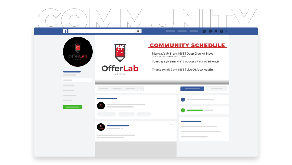 • Weekly Community Q&A With OfferLab CoachThis private, members-only group is where you bring your questions and get direct help from the professional OfferLab Coaches. Collaborate with other OfferLab students, attend the live calls, and celebrate your progress and sales.
